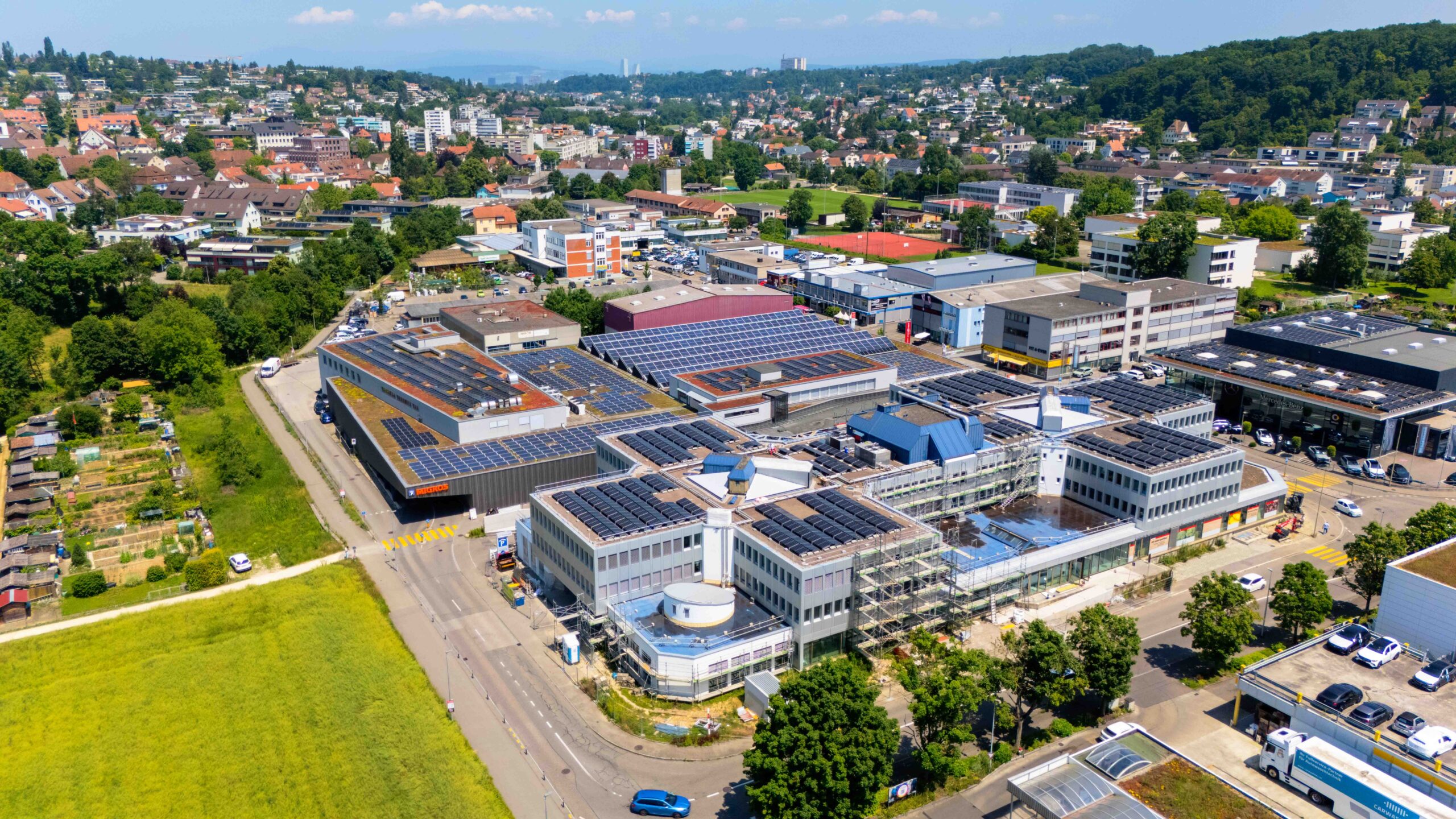 Heute liefert die Anlage zuverlässig Solarstrom direkt am Standort und deckt einen bedeutenden Teil des Energiebedarfs des Shopping-Centers ab. Das Projekt zeigt exemplarisch, dass grosse Photovoltaikanlagen auch in bestehenden, komplexen Gebäuden effizient und wirtschaftlich realisierbar sind – selbst bei laufendem Betrieb.